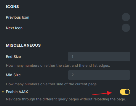 Section titled “9. Pagination element”Select the “Enable AJAX” option on the Pagination element to ensure compatibility with other filter elements.