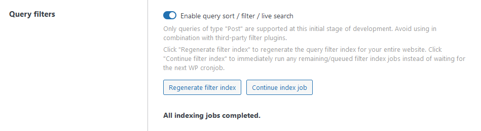 - Purpose: Immediately run any remaining/queued filter index jobs instead of waiting for the next WP cronjob.