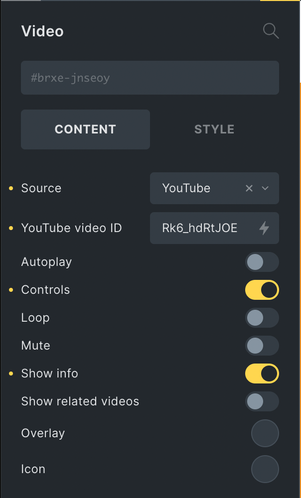 Controls (checkbox) - Show video player controls. Default: enabled.