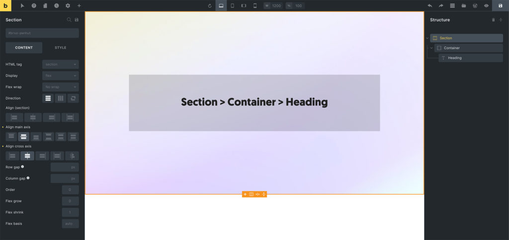Example: Section > Container > Heading