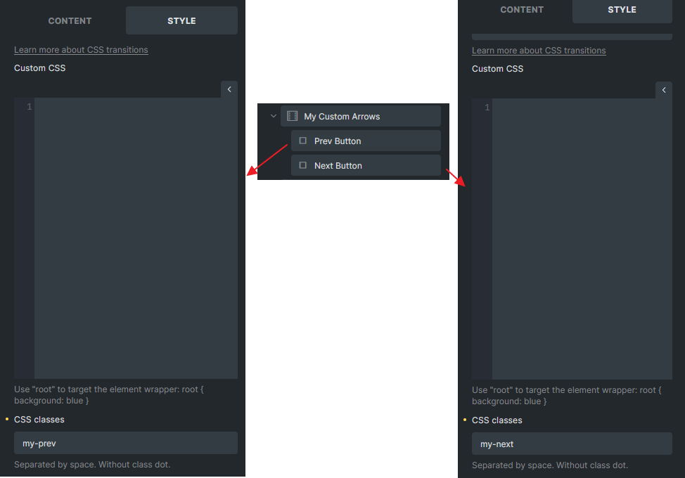 Please set unique classes for your buttons. We assigned the my-prev and my-next CSS classes in our example.