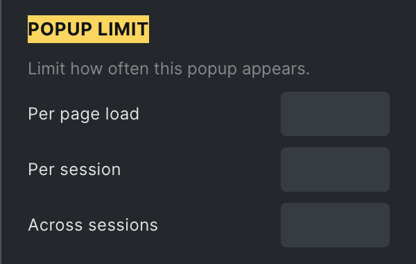 Section titled “Popup limit”By default, the popup shows every time it is triggered by an interaction.