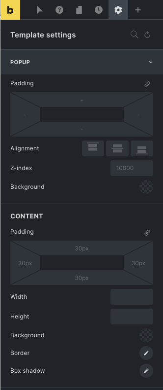 Section titled “Popup settings”Popup-specific settings are located under “Settings > Template Settings > Popup”.