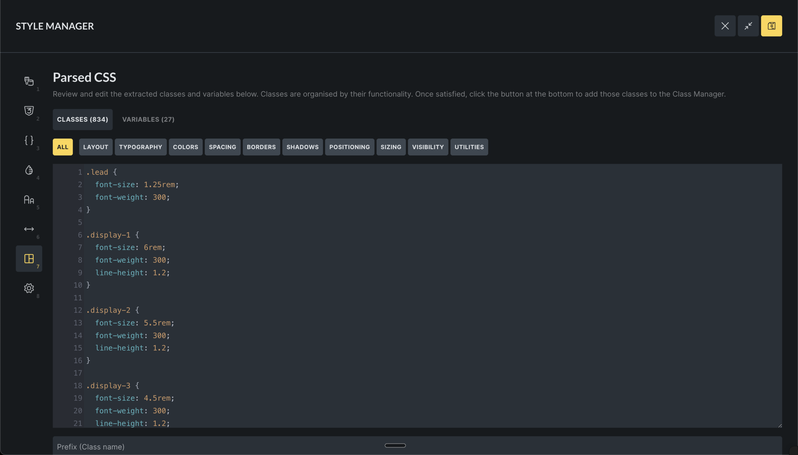 The Class Manager is used to create reusable CSS classes that can be applied to any element.