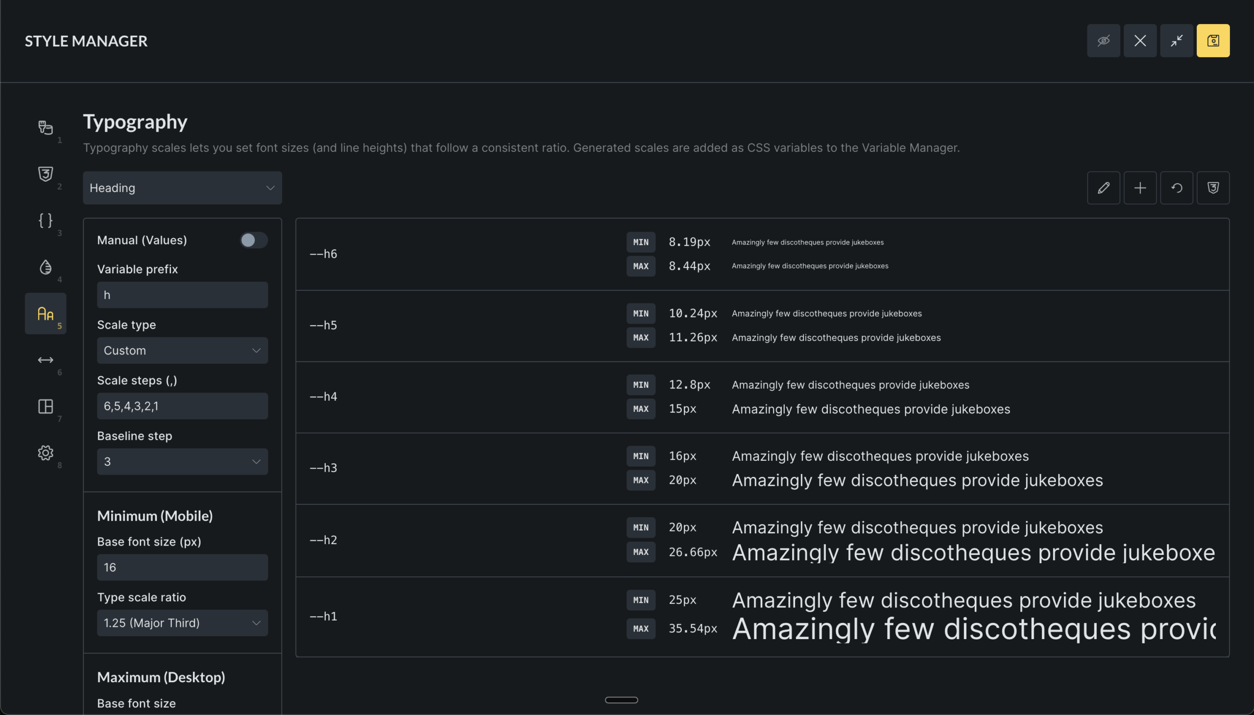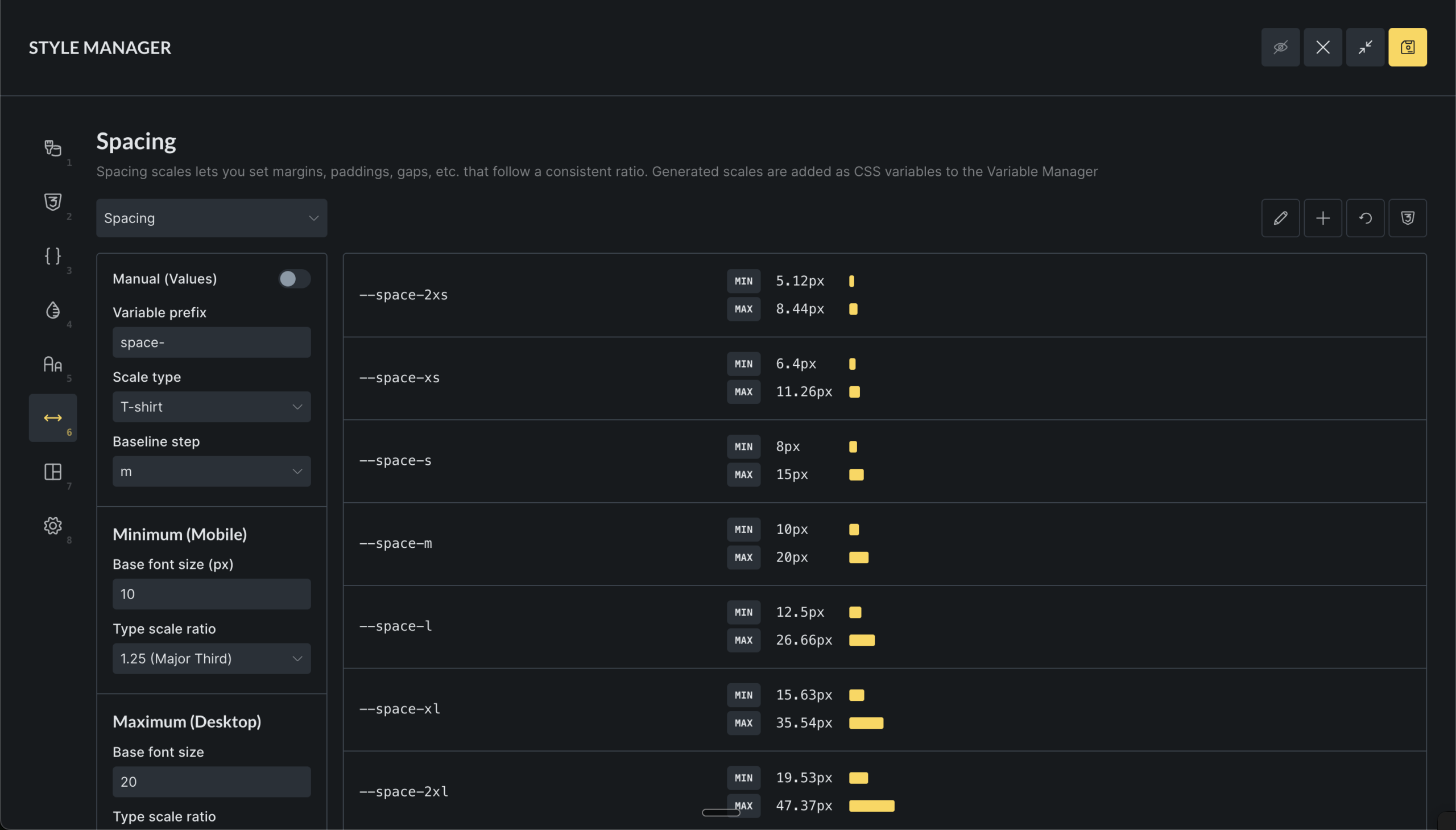 From this, Bricks generates a set of variables that scale smoothly between mobile and desktop.
