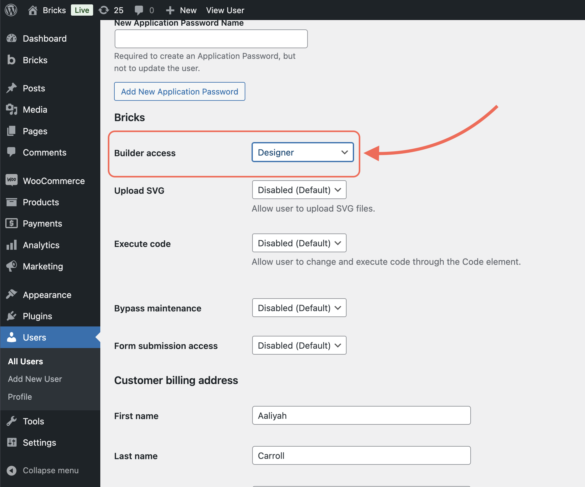 - Go to Bricks > Settings > Builder access