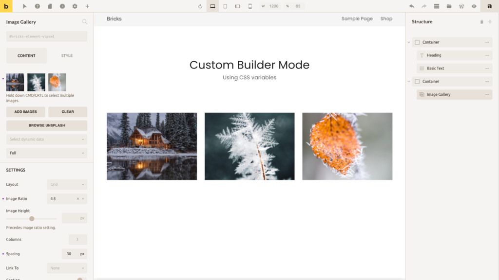 --bricks-tooltip-bg: #16130f; --bricks-tooltip-text: #f6f4f2;}If you copy the CSS above, paste it into your “Builder Mode (Custom)” setting, and save your settings, your builder should look like this: