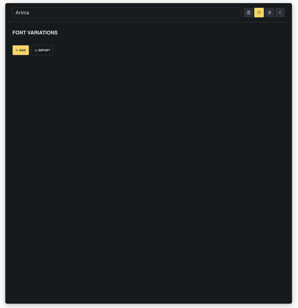 - Add variant manually: Click the Add button to upload a single font file. Set the font’s weight and style individually.