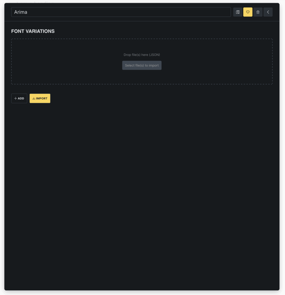 - Import multiple variants: Click Import to drag and drop or select multiple font files. Bricks will automatically upload and organize them by weight and style.