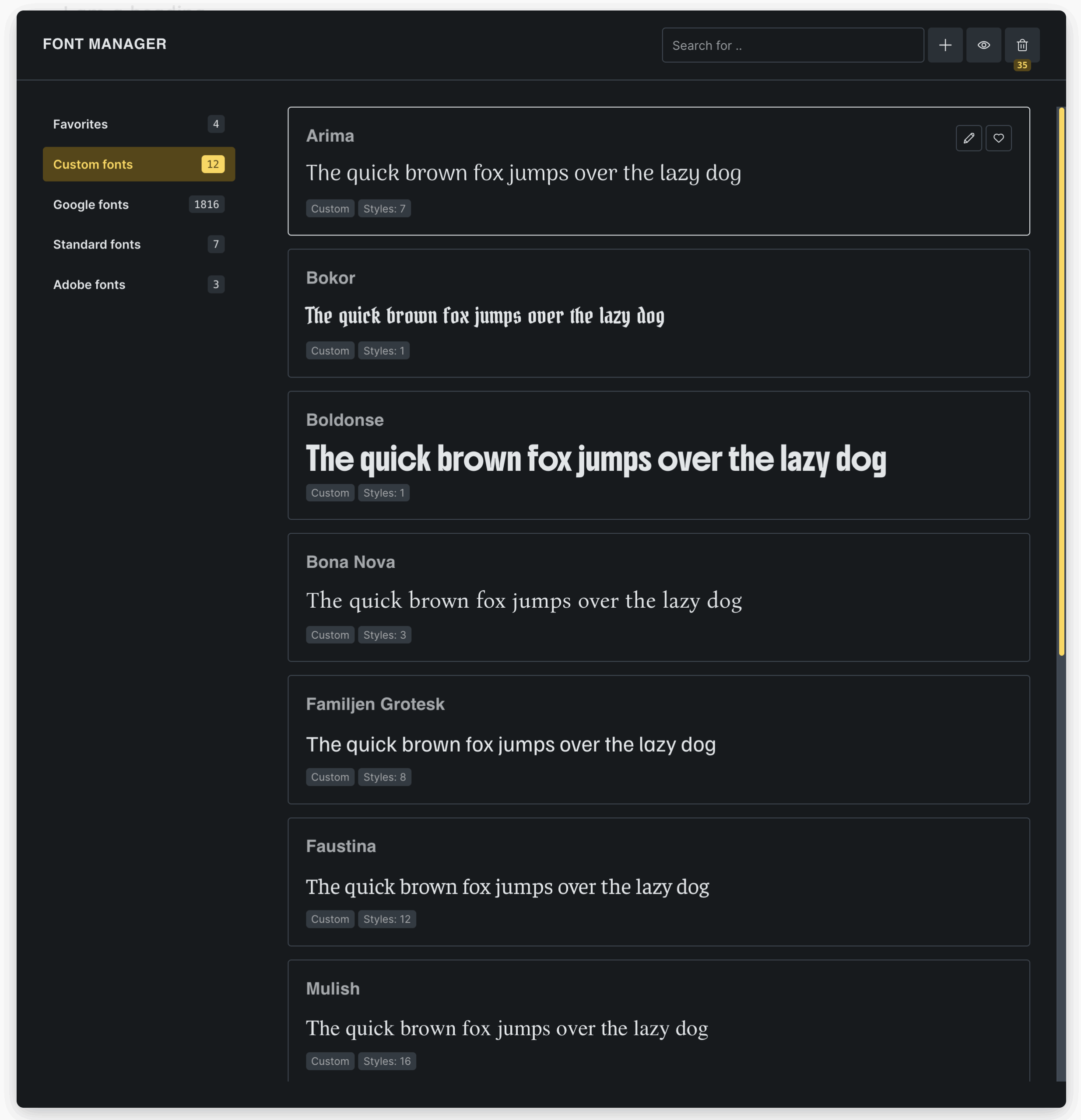 Section titled “Core functionalities”Add and manage custom fonts