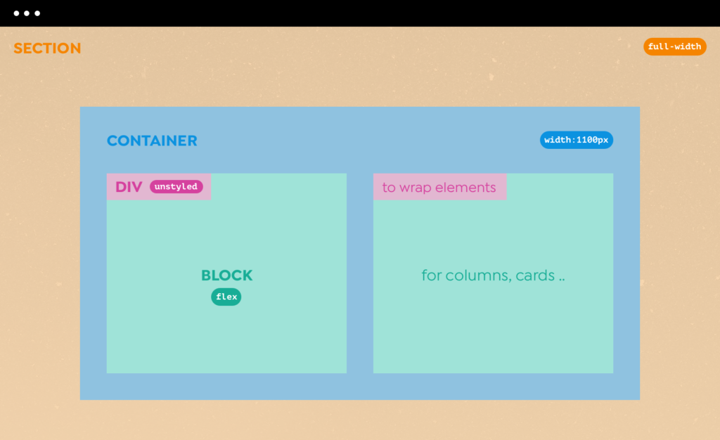 If you are new to web design, we recommend using the Section, Container, and Block element. As they come with presets that work well out-of-the-box without having to configure commonly used settings for every layout element.