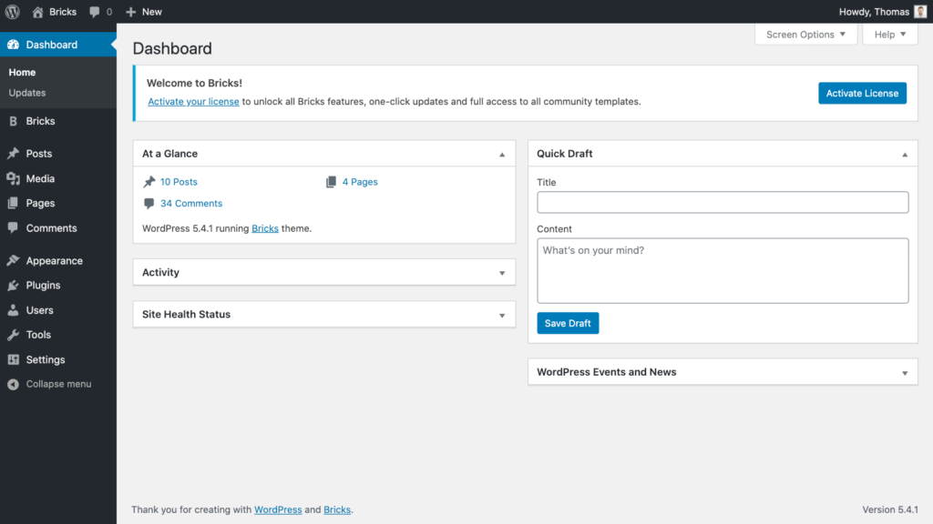 That’s it! You are now ready to start building your site with Bricks.