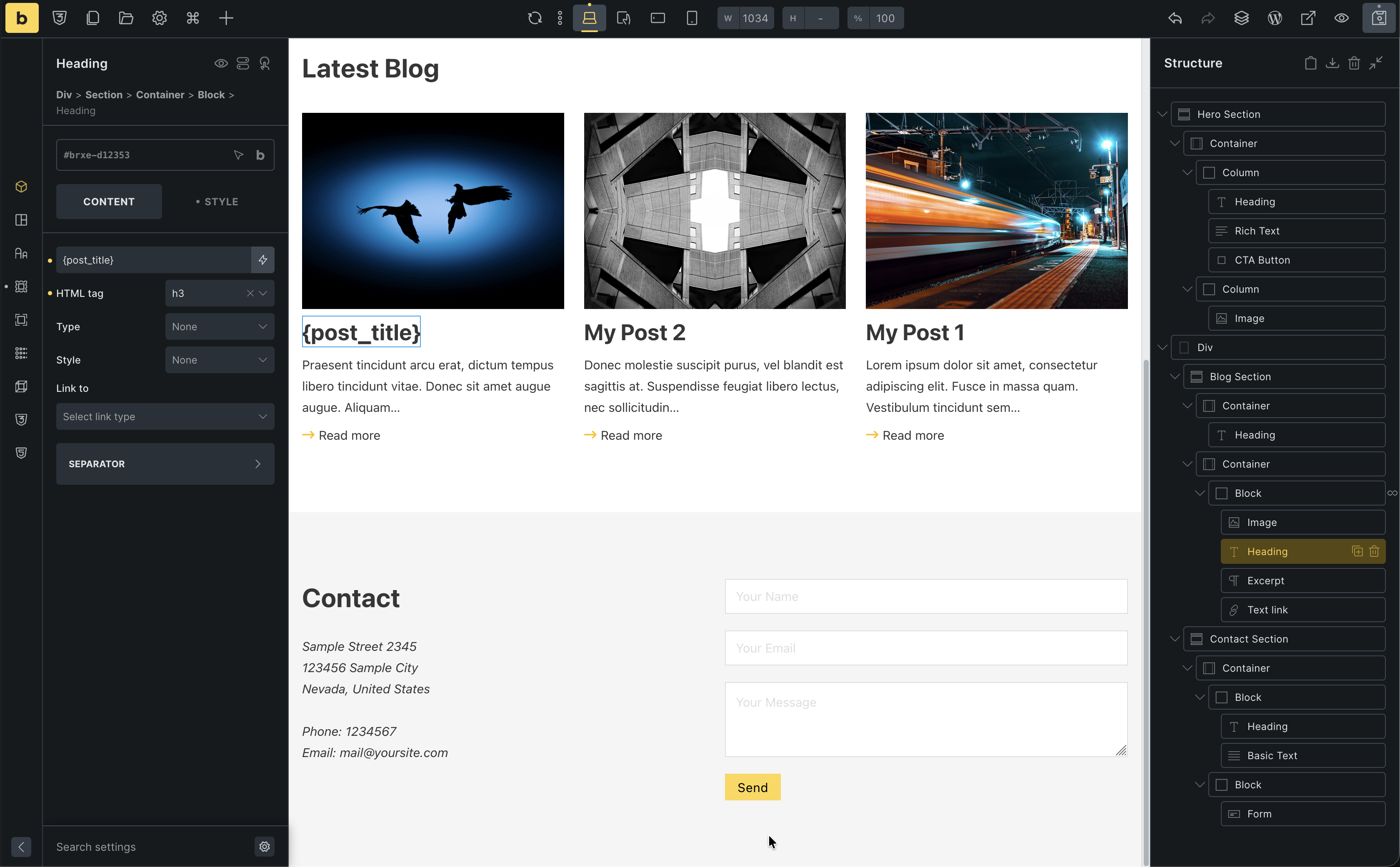 - Heading (Post Title, H3)