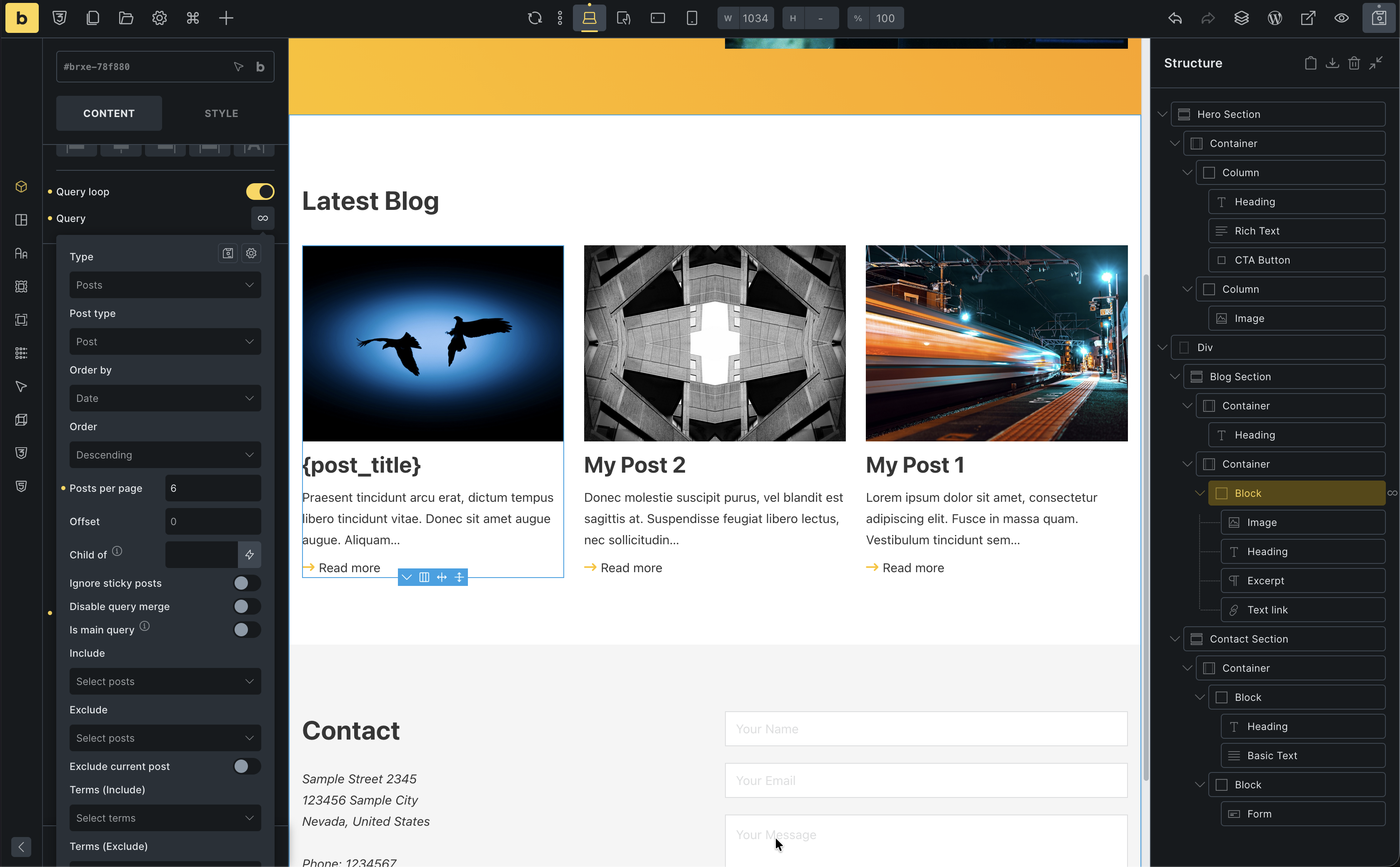 - Inside the Container, add a Heading (“Latest Posts”)