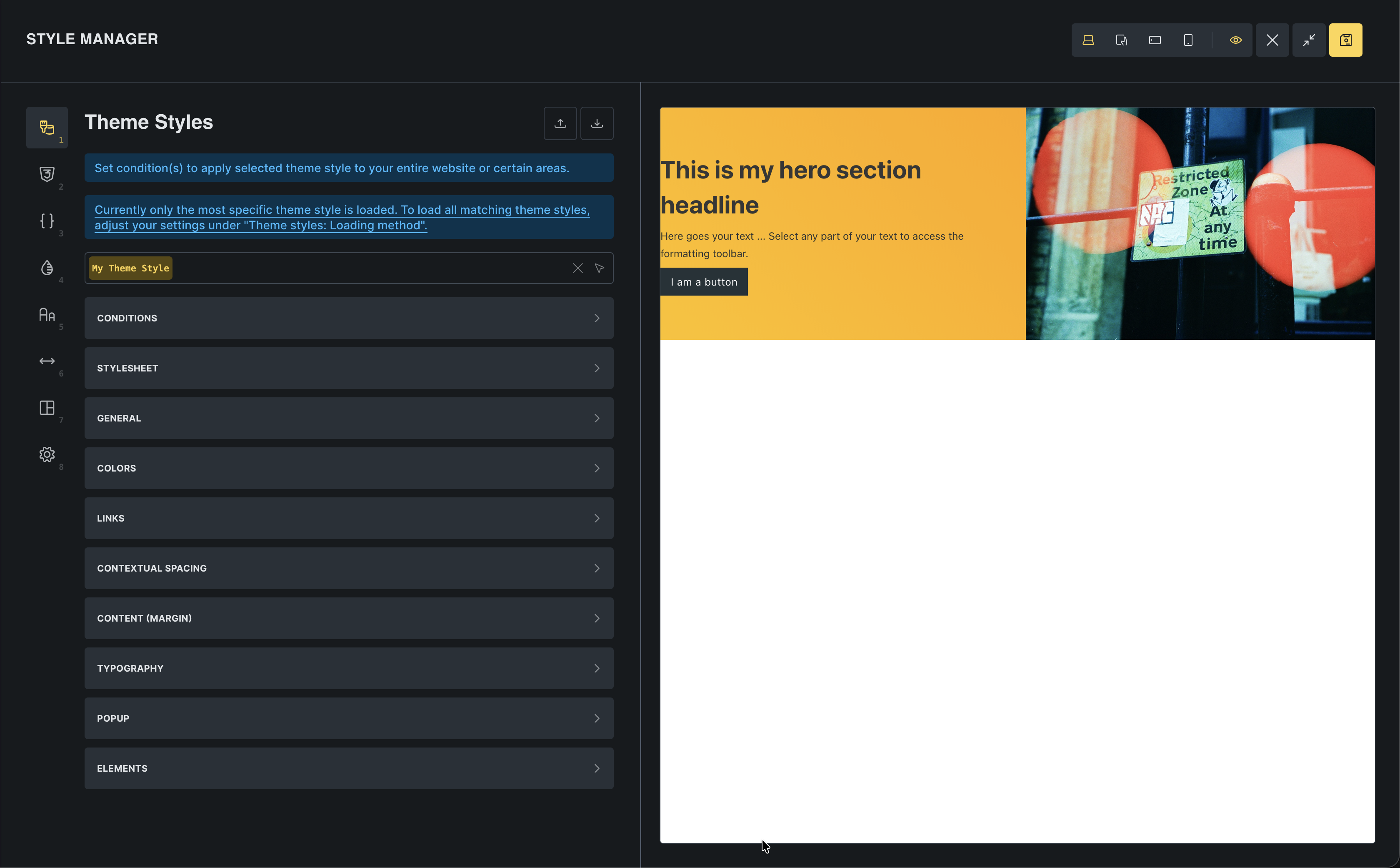 Section titled “Create a theme style”- Click the Styles icon in the toolbar (or press