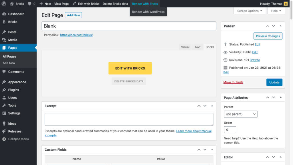 Render with Bricks / Render with WordPress