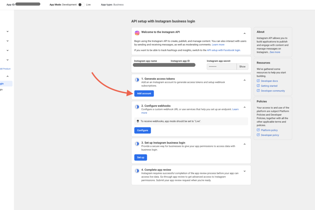 Step 3: Add the Instagram product to your app