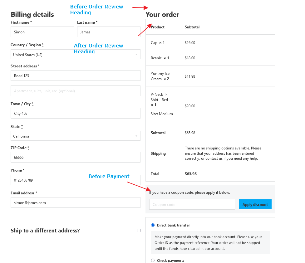 - By default, the Checkout Login element will appear where it’s placed in the layout. However, you can choose alternative positions, such as: Before Order Review Heading, After Order Review Heading, Before Payment.