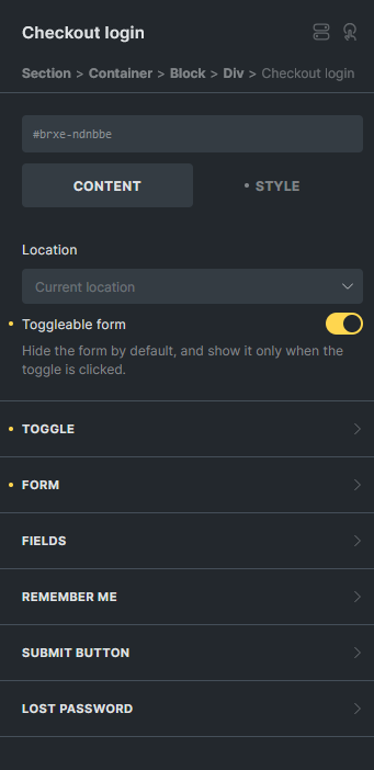 In previous versions, the placement of the checkout login form was fixed, and styling options were limited, requiring custom CSS for adjustments. Now, you can control both placement and appearance.
