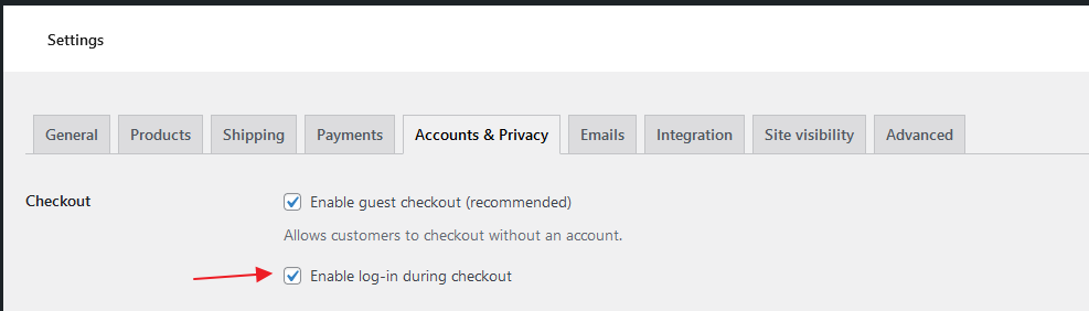 This features becomes available once you’ve enabled the Enable login during checkout under WooCommerce > Settings > Accounts & Privacy .
