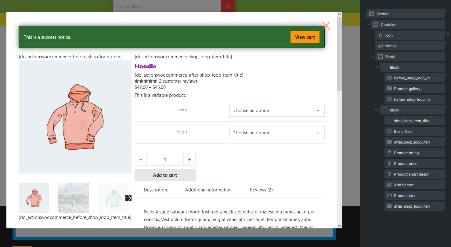 Additionally, consider including a WooCommerce Notice element within the popup to display any notifications or confirmations directly to the user after an add-to-cart action.